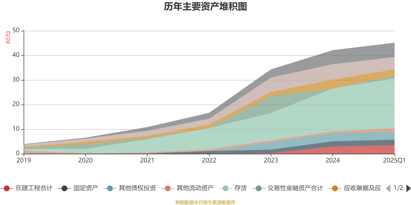 资产重大变化方面,截至2025年一季度末,公司货币资金较上年末减少19.55%,占公司总资产比重下降3.73个百分点;存货较上年末增加16.52%,占公司总资产比重上升3.58个百分点;应收票据及应收账款较上年末减少26.96%,占公司总资产比重下降2.73个百分点;交易性金融资产合计占公司总资产的2.22%,上年末为0。