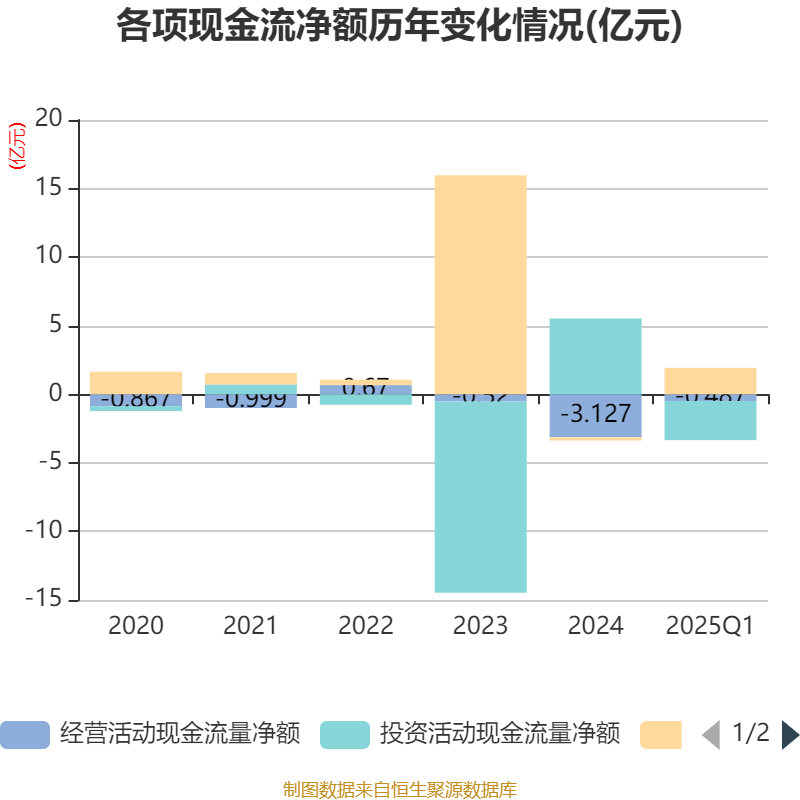 截至2025年一季度末,公司经营活动现金流净额为-4874.55万元互盈策略,同比减少2824.43万元;筹资活动现金流净额1.93亿元,同比增加1.99亿元;投资活动现金流净额-2.86亿元,上年同期为2.71亿元。