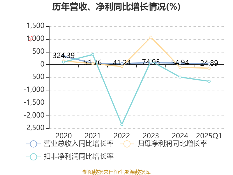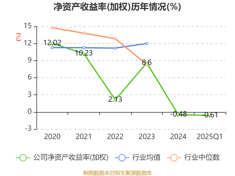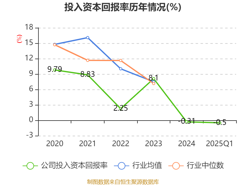盈利能力方面, 2025年一季度公司加权平均净资产收益率为-0.61%,同比下降2.02个百分点。公司2025年第一季度投入资本回报率为-0.5%,较上年同期下降1.76个百分点。