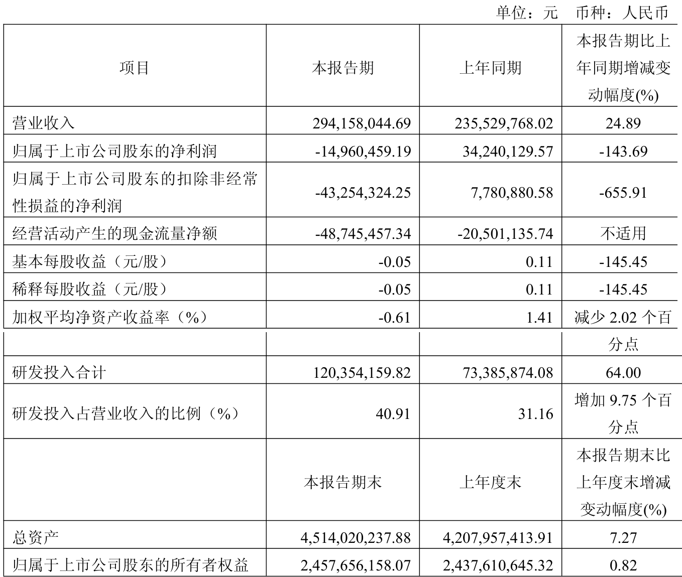 中证智能财讯中科飞测(688361)4月26日披露2025年第一季度报告。公司实现营业总收入2.94亿元,同比增长24.89%;归母净利润亏损1496.05万元,上年同期盈利3424.01万元;扣非净利润亏损4325.43万元,上年同期盈利778.09万元;经营活动产生的现金流量净额为-4874.55万元,上年同期为-2050.11万元;报告期内,中科飞测基本每股收益为-0.05元,加权平均净资产收益率为-0.61%。