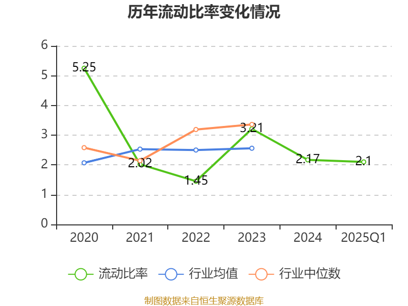 2025年第一季度,公司流动比率为2.1,速动比率为0.79。